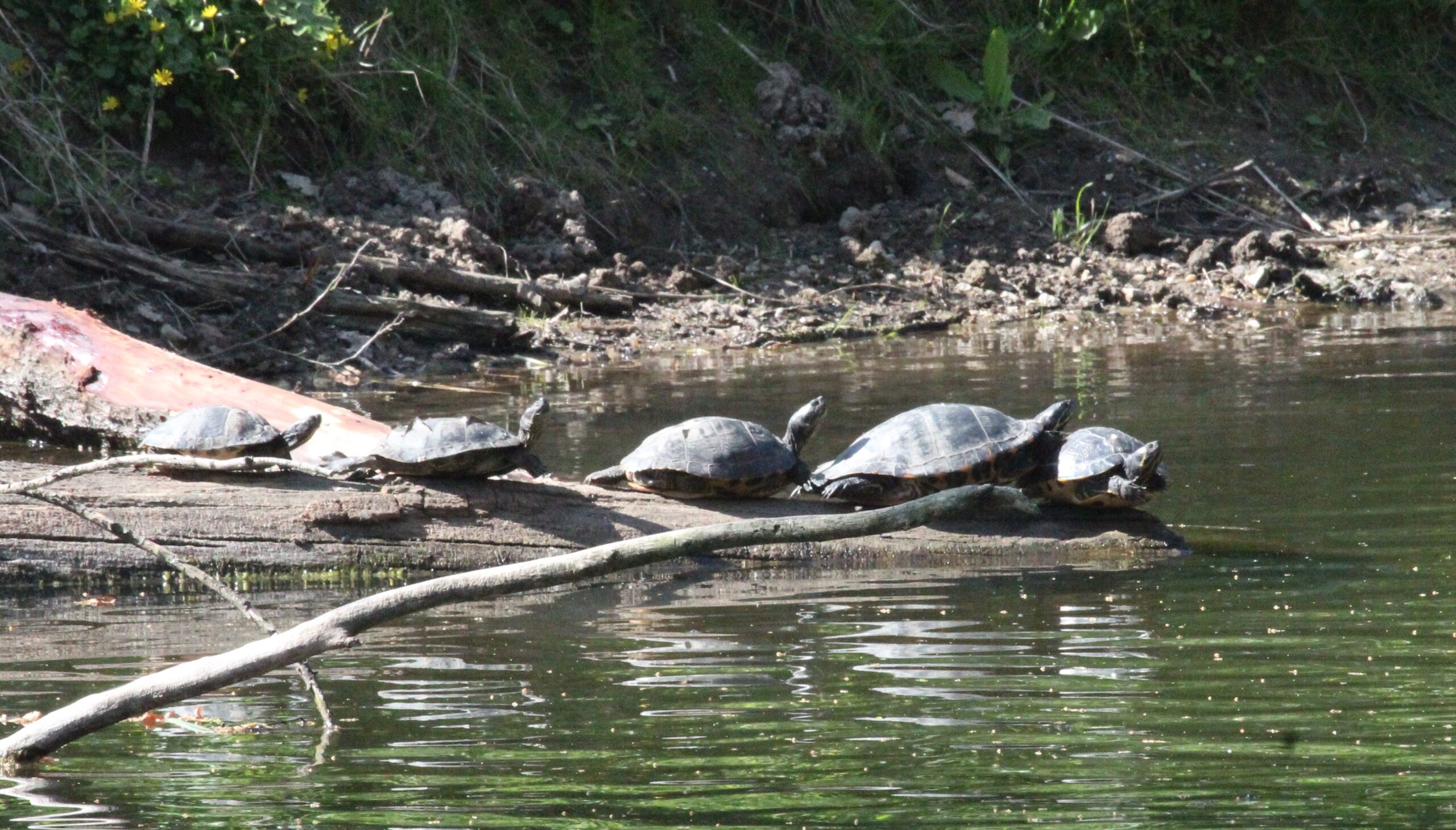 Gek genoeg, nu betekent de uitdrukking het tegenovergestelde: iets stiekems voorbereiden. Daar wil ik deze zonnende schild-padden natuurlijk niet van verdenken. Het was ruim 20 graden. Hun schilden lagen gewoon zonnepanelen te wezen!